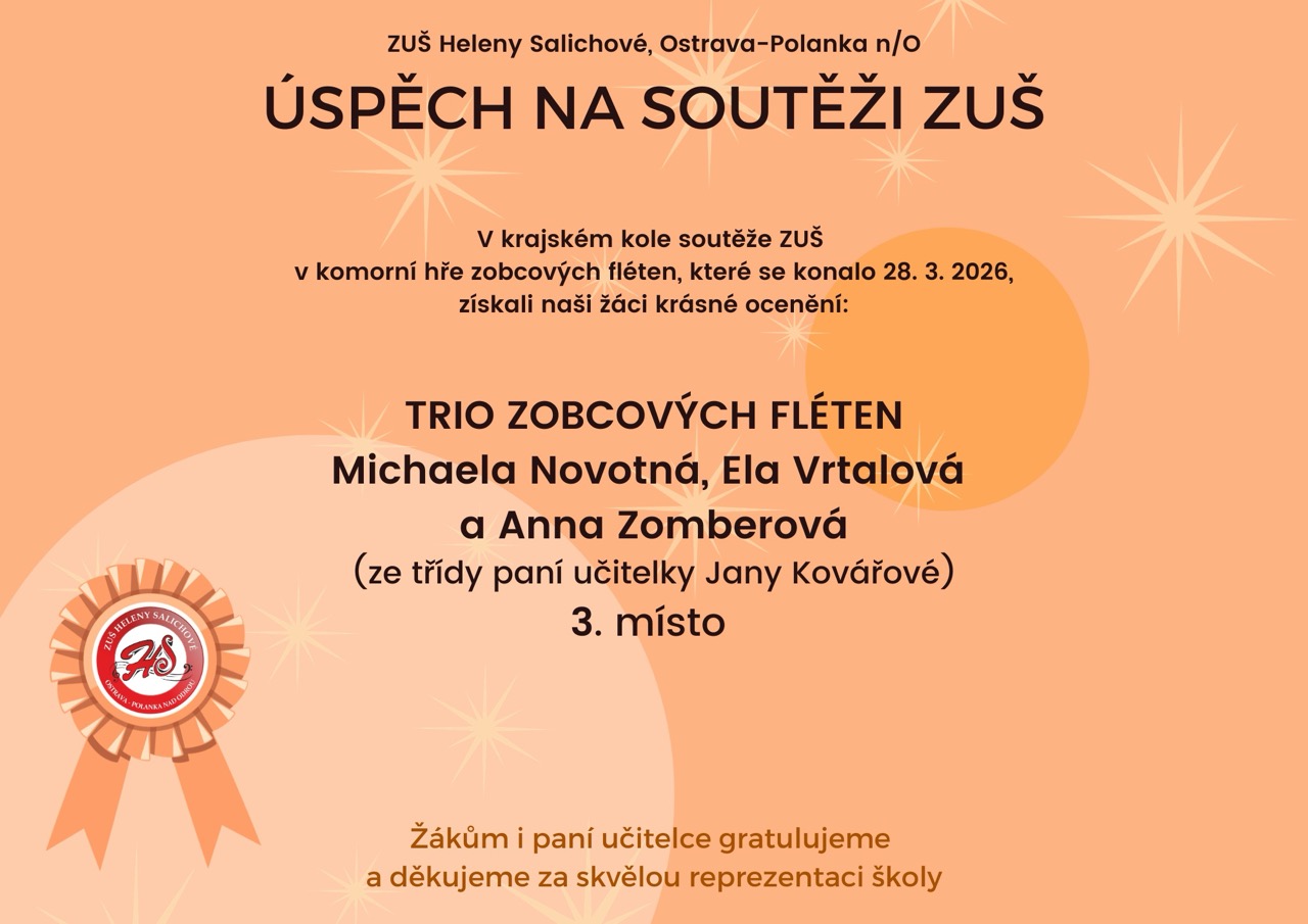 V krajském kole soutěže ZUŠ v komorní hře dechových nástrojů získaly naše žákyně krásné ocenění: